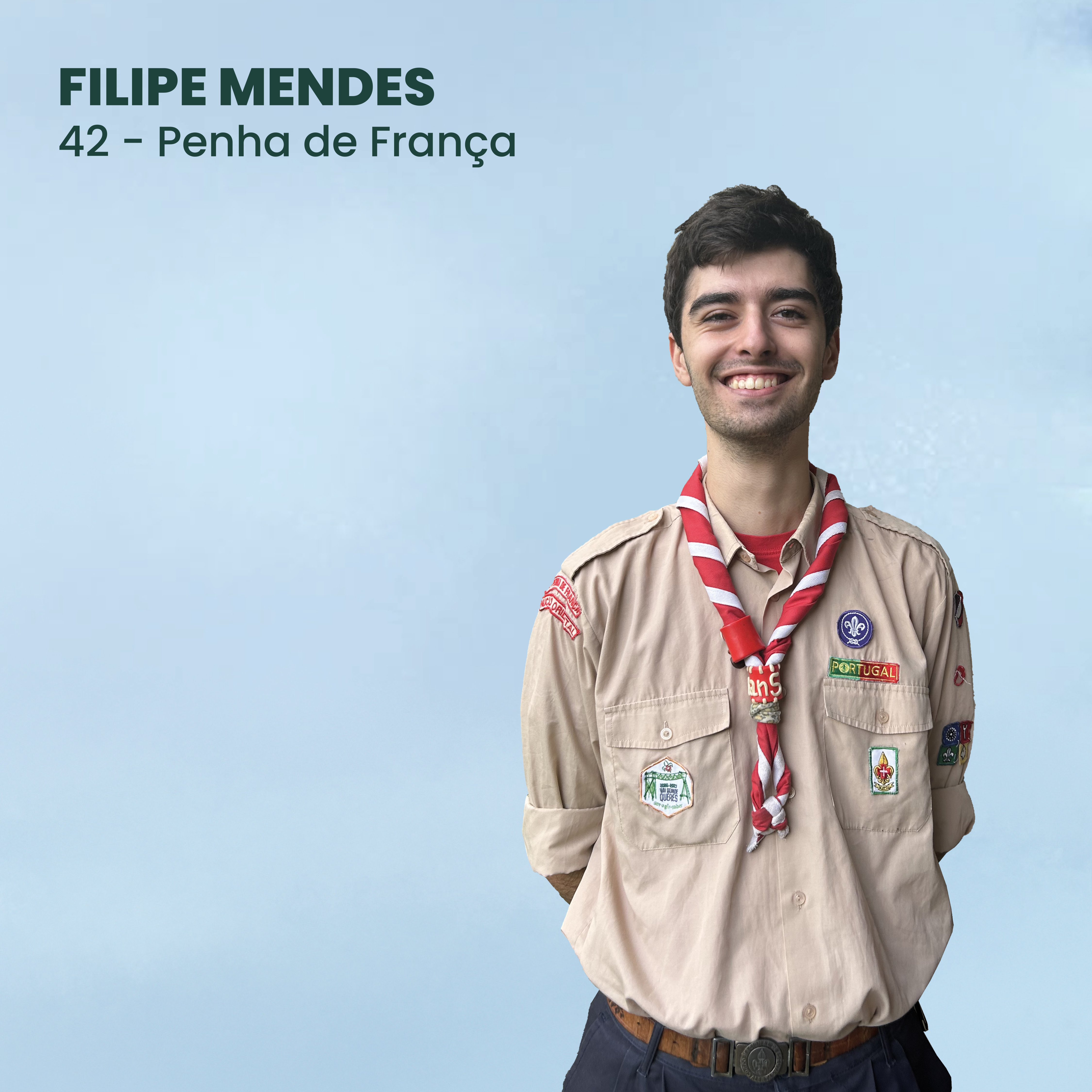 Alo lindos, eu sou o Filipe Mendes, comecei o meu caminho no escutismo no 42 Penha de França em 2010.